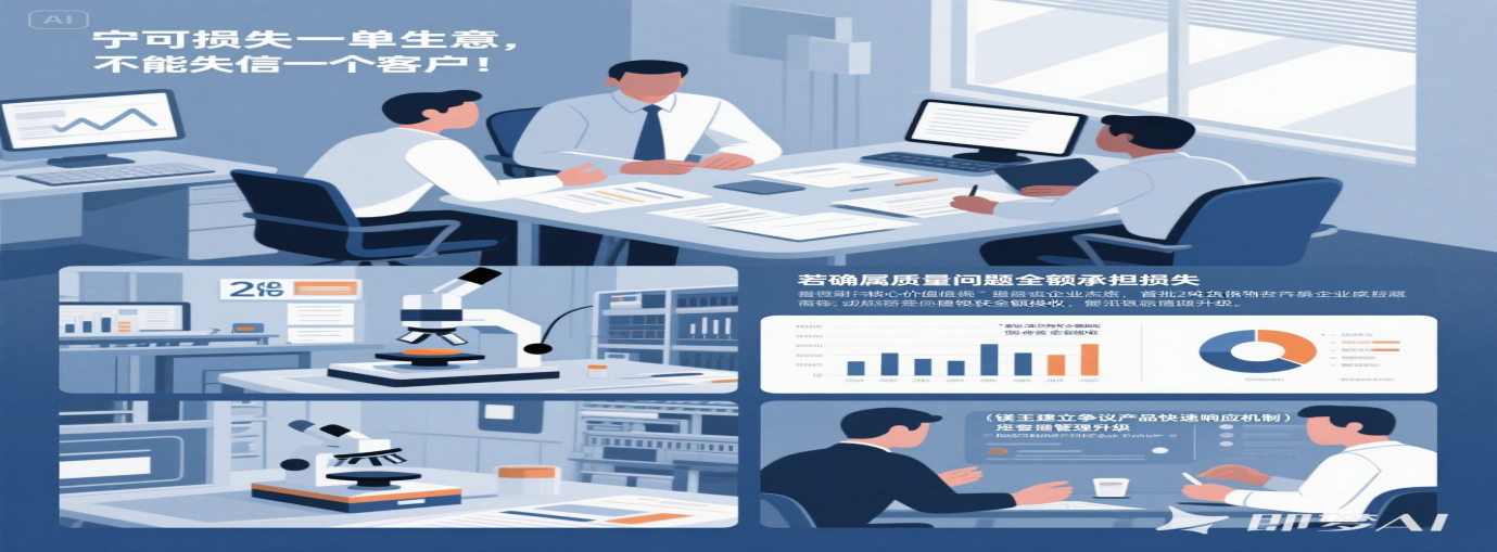 12月5日,鎂王公司召開(kāi)了緊急會(huì)議。會(huì)議室里,氣氛凝重,大家都在討論著應(yīng)對(duì)方案。有提出讓第三方檢測(cè)的,但這個(gè)方案耗時(shí)7天,很可能會(huì)錯(cuò)過(guò)客戶的交期;也有建議先行補(bǔ)發(fā)合格品保障生產(chǎn),同步送檢厘清責(zé)任的。就在大家爭(zhēng)論不休時(shí),畢總一拍桌子,堅(jiān)定地說(shuō):"寧可損失一單生意,不能失信一個(gè)客戶!我們選擇先行補(bǔ)發(fā)合格品,這是我們的誠(chéng)信擔(dān)當(dāng)。