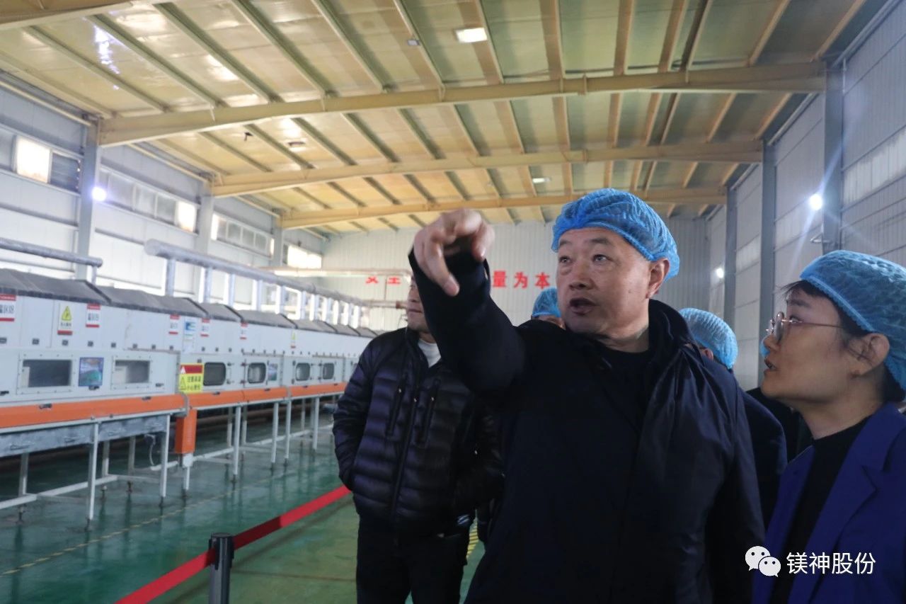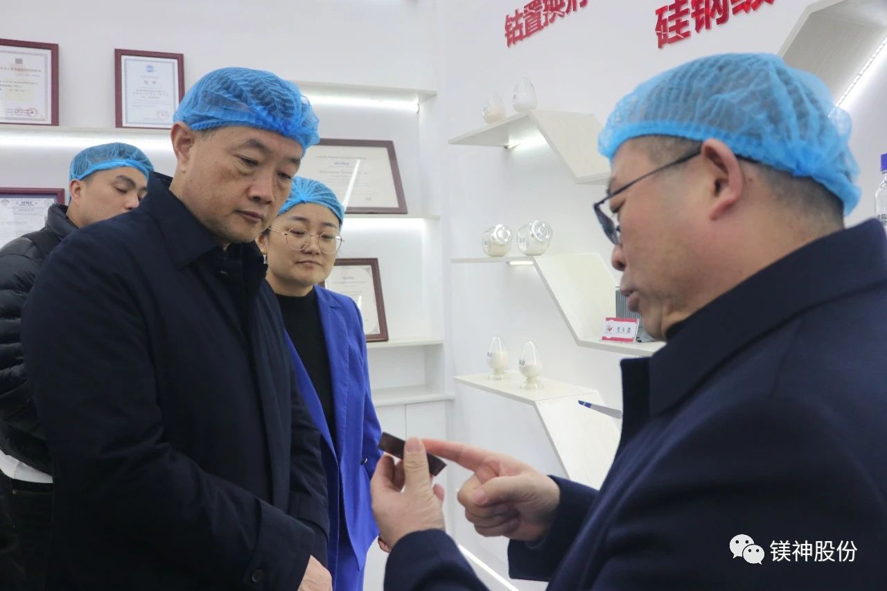 11月13日,遼寧省大石橋市市委書記王殿豐一行蒞臨河北鎂神科技股份有限公司(以下簡稱“鎂神科技”),鎂神科技董事長孫文帶領公司高管熱情接待,并陪同參觀了榮譽室、研發中心、生產車間和倉庫。此次交流旨在加強兩地企業間的合作,推動產業發展和技術創新。