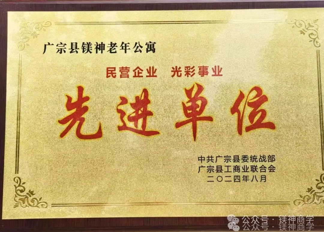 孫文董事長的善舉得到了社會各界的廣泛贊譽與認可。為表彰他在公益事業上的杰出貢獻,中共廣宗縣委統戰部與廣宗縣工商業聯合會聯合授予廣宗縣鎂神老年公寓“民營企業光彩事業先進單位”的榮譽稱號,并頒發慰問品,以示鼓勵與肯定。這份榮譽的獲得,不僅是對孫文董事長個人及公寓團隊的極大鼓舞,更是對全社會投身公益事業的一種正向激勵與引導。