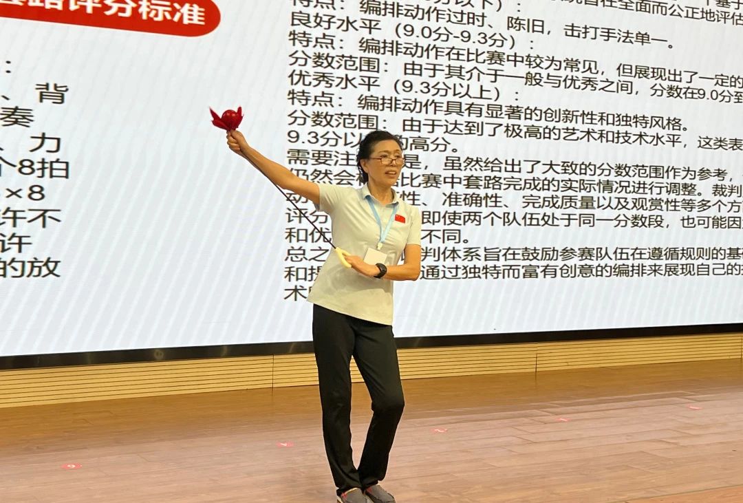 在為期三天的活動中,不僅有健身球操競賽規(guī)則的解讀,還包括賽事活動的組織策劃及套路教學。